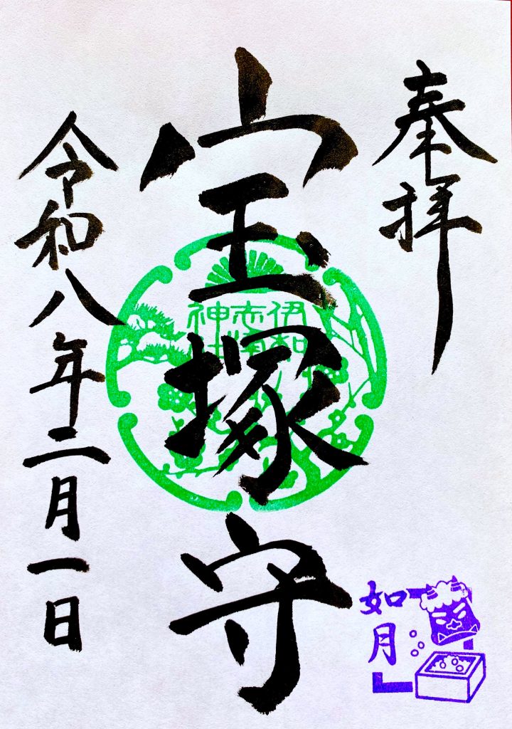 鎮座地伊孑志を中心に宝塚市をお守り頂いております伊和志津大神様にご参拝頂きました『宝』塚守の印となります。